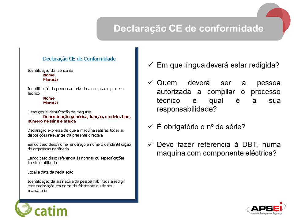 - o reconhecimento do CATIM como Organismo Notificado para a Directiva Máquinas desde 1994 (Nº 0464)